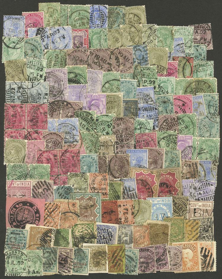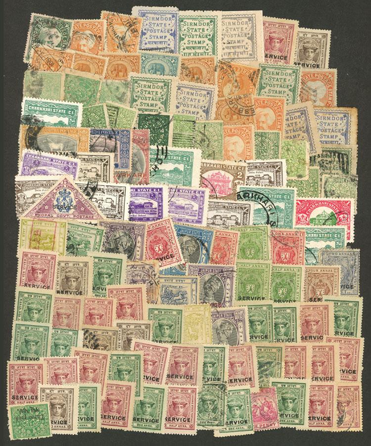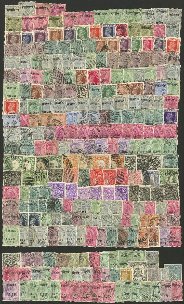 INDIAN STATES: MANY HUNDREDS of old stamps, used or mint (they can be without gum), in general of very fine quality. Completely unchecked, the expert will possibly find interesting material, LARGE POTENTIAL VALUE, good opportunity! IMPORTANT: Please view ALL the photos of the lot, because all the material has been scanned. (Image)