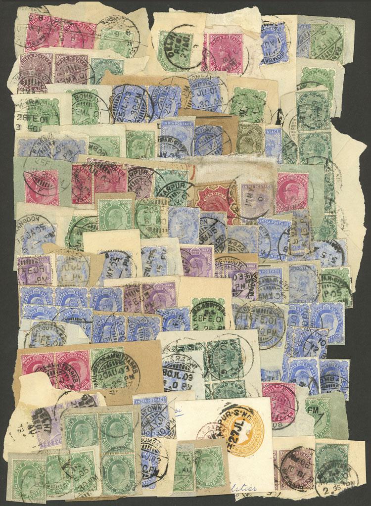 Lot of old used stamps on fragments, very fine general quality, completely UNCHECKED, perfect to look for good values, varieties and rare cancels, good opportunity at low start! ATTENTION: please view ALL the photos of the lot, because all the stamps have been scanned. (Image)