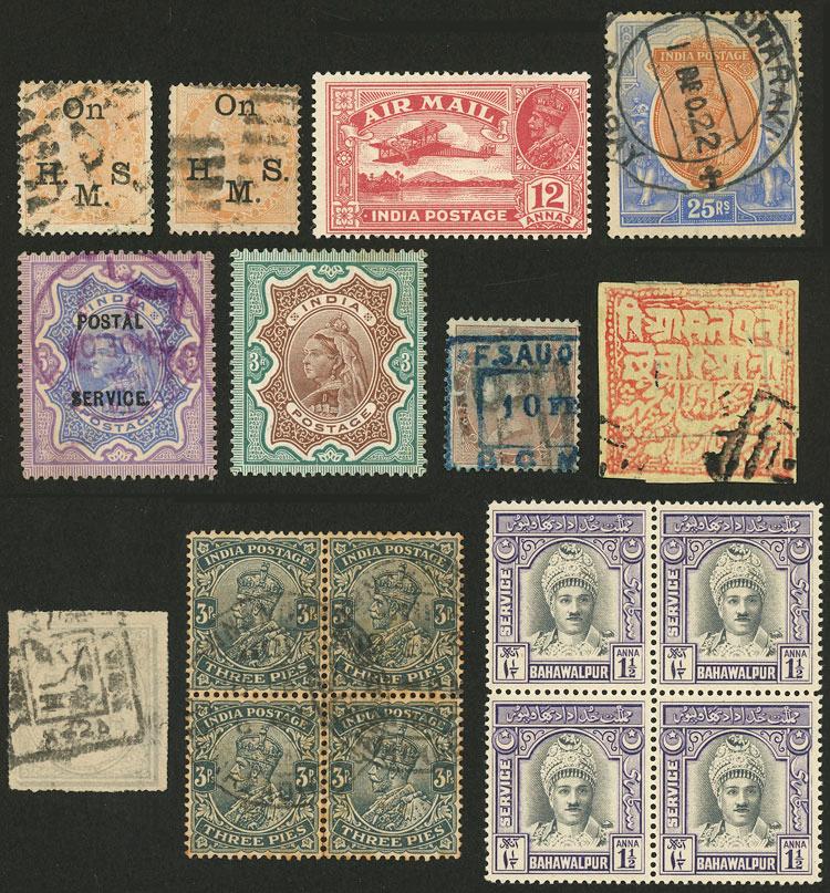 INDIAN STATES: Interesting lot of stamps of varied periods, used or mint without gum, in general of fine to very fine quality (completely unchecked, some could have small defects), HIGH CATALOG VALUE, good opportunity! (Image)