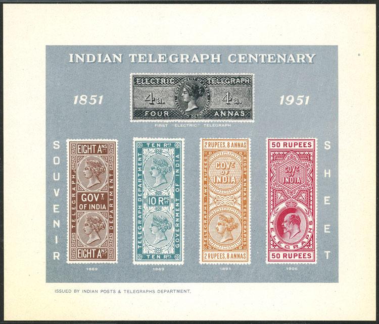 Sheet issued by the Post in 1951 commemorating the telegraph centenary, VF quality! (Image)