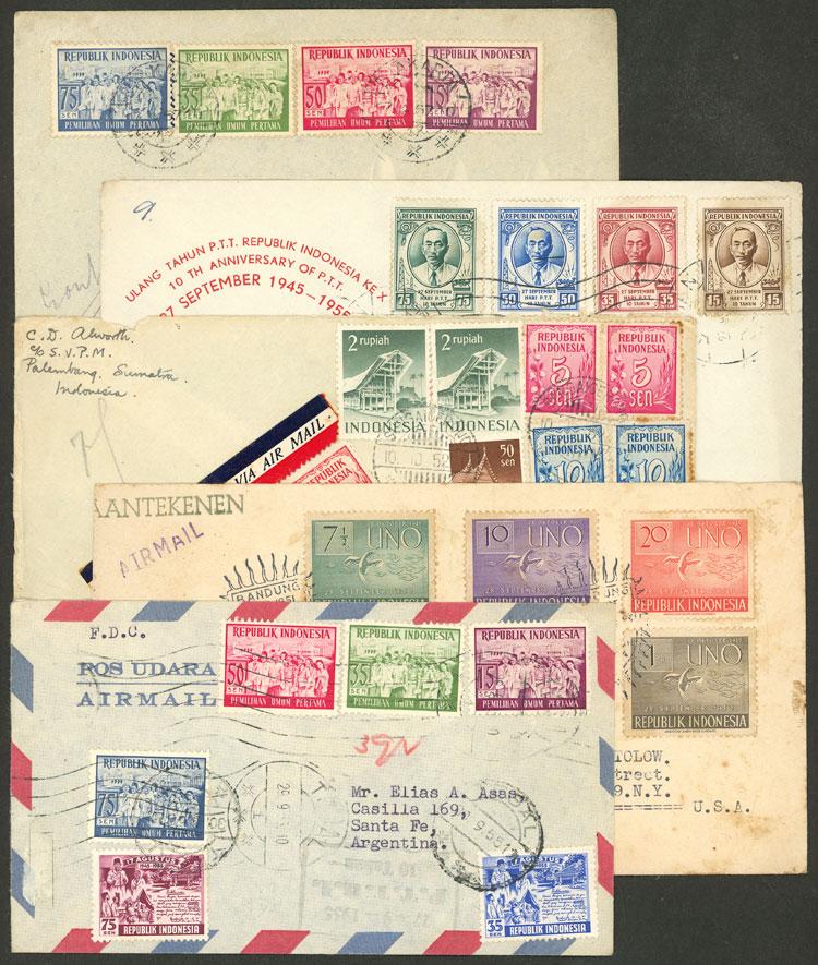 5 Covers sent to Argentina (4) and USA between 1951 and 1957, with attractive frankings, very nice! IMPORTANT: Please view ALL the photos of the lot, because all the material has been scanned.