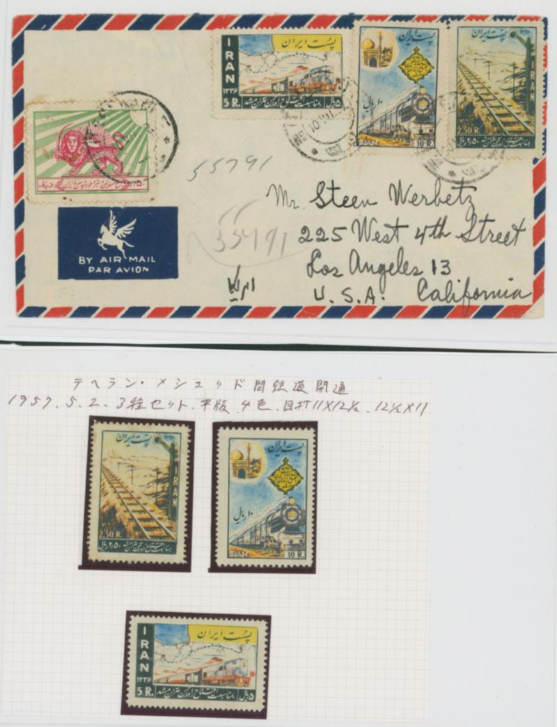 Iran 1957 2.5r - 10r unused , 3 stamps, 1 covers