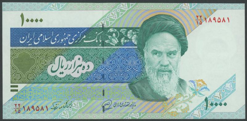 1992 10,000 rials Nourbakhsh/Khan Pick 146c x18, obv. Khomeni, rev. Mount Damavand, Uncirculated, Cat US$225.