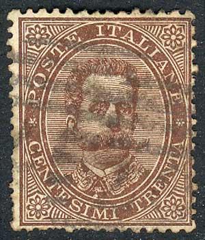Sc.49 (Sa.41), 1879 30c. brown, used, good example, catalog value US$2,800 (Sassone catalog value euros 4,000) (Image)