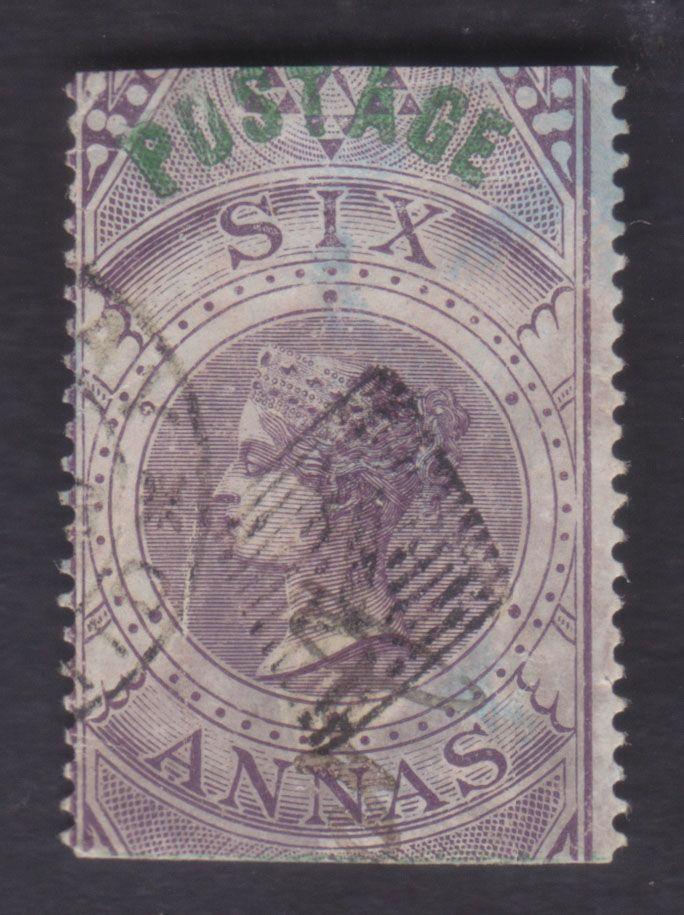 India 1866 QV 6as purple used stamp, SG 68, CV £250 (Image)