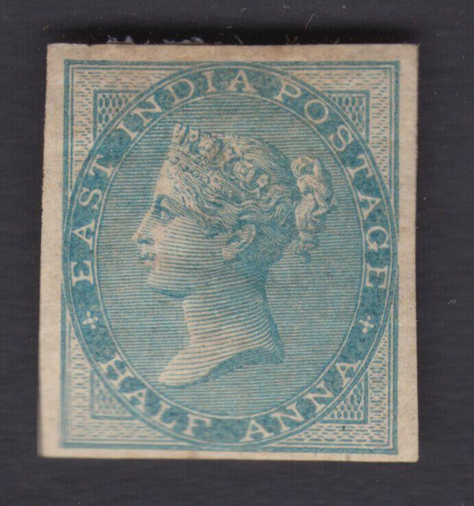 India DLR QV ½a Rare imperf single LH mint, Catalogue value for pair £950, as SG 37a (Image)
