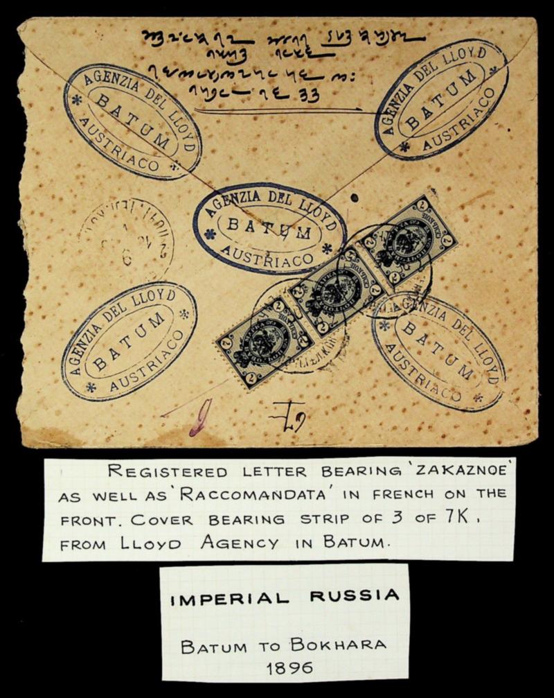 Russia 1896 3v cover/w cachet from Batum to Bokhara India (Image)