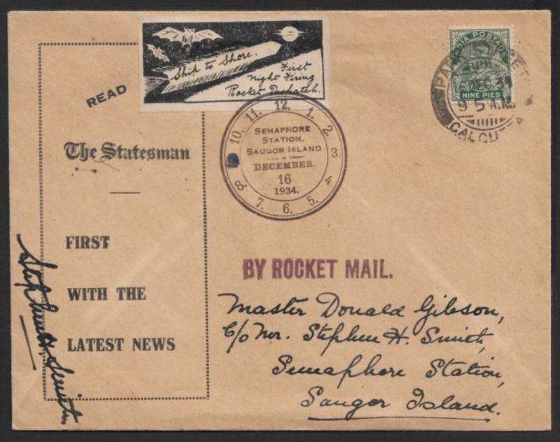 India 1934 First Rocket Night Firing, Ship to Shore, The Statesman, from Park Street Calcutta to Saugur Islands (Image)