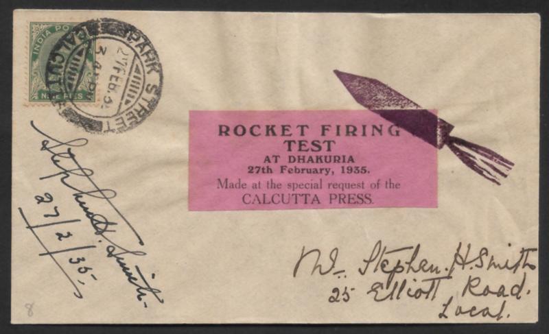 India 1935 Test Rocket Firing at Dhakuria by Stephen Smith from Park Street to Elliott Road Calcutta (Image)