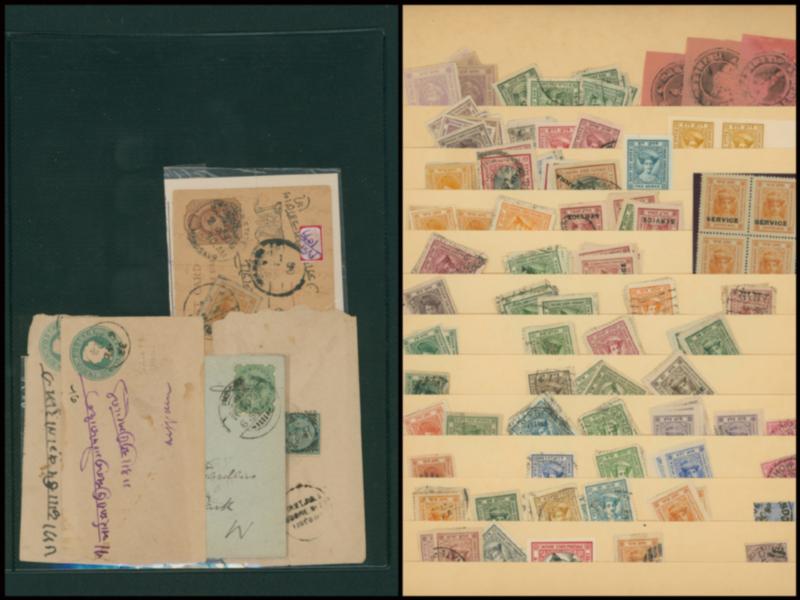 India Indor 1886-1947, 140 stamps, 4 covers, 1 post(al) cards used (Image1)
