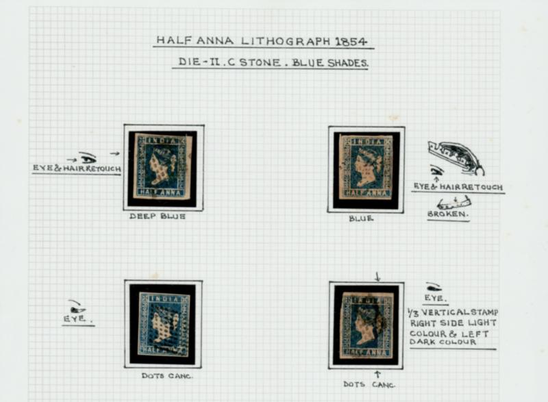 India 1854 ½a blue (shades), imperf, die II, each with retouches (4). SG 6/7, minimum catalog £640+ US$0 (Image)