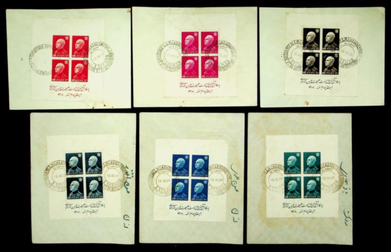 Iran 1938 Gen. Reza Shah Pahlavi 4v Perf+ Imperf MS used on 6 covers w/ bilingual script cancels (Image)