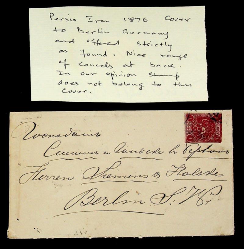 Persia 1876 cover to Berlin Germany w/ nice range of cancels at back (Image)