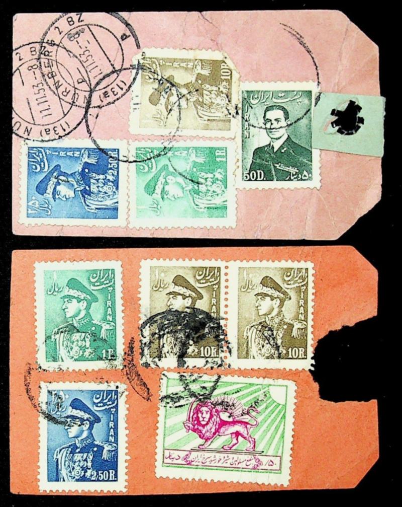 Iran 1953 2 parcel tag cards to Nurnberg Germany (Image)