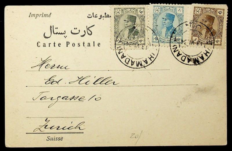 Iran Persia 1934 3v postcard from Hamadan to Zurich Switzerland (Image)