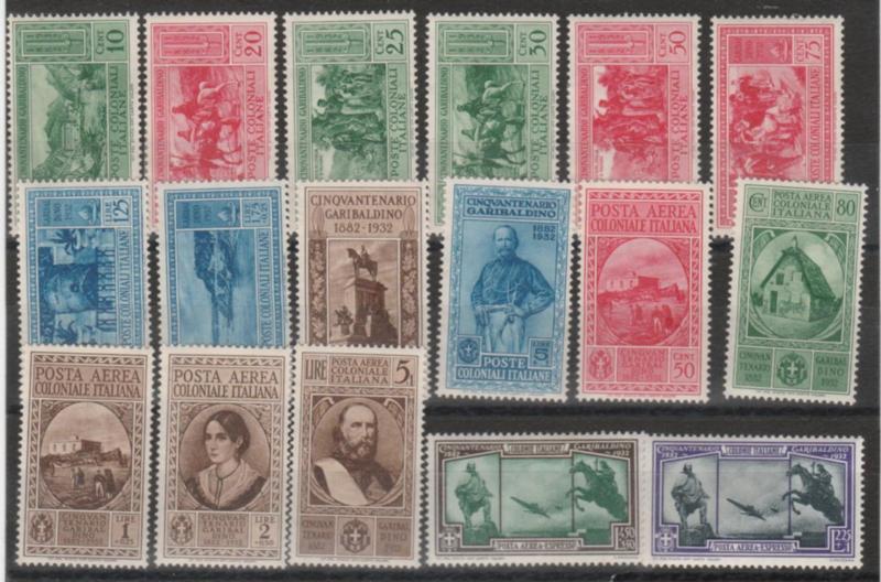 Colonie Italiane - Emissioni Generali. 1932 - Garibaldi, n. 1/10+A1/A7. Cat. € 320,00. SPL (Image)