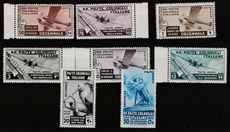 Colonie Italiane - Emissioni Generali. 1933 - Decennale della Marcia su Roma, n. A22/A29. Cat. € 520,00. SPL (Image)