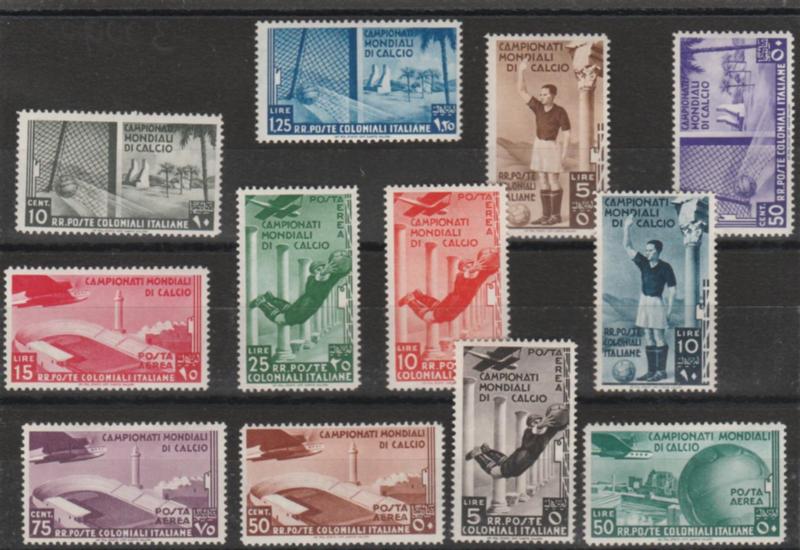 Colonie Italiane - Emissioni Generali. 1934 - Campionati mondiali di calcio n. 46/50+A31/A37. Cert. Biondi. Cat. € 3000,00. SPL (Image)