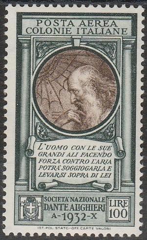 Colonie Italiane - Emissioni Generali. 1932 - Dante Alighieri n. 14. Cat. € 100,00. SPL (Image)