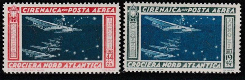 Colonie Italiane - Cirenaica. 1933 - Posta Aerea, Crociera Balbo n. 18/19. Cat. € 175,00. SPL (Image)