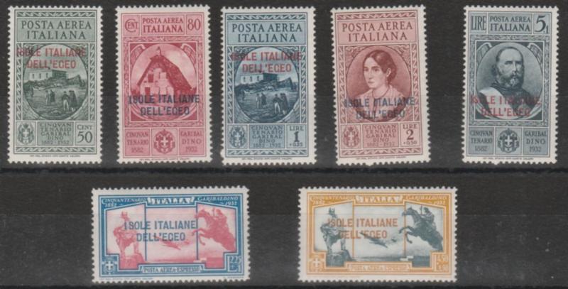 Colonie Italiane - Egeo. 1932 - Posta Aerea, Garibaldi n. P.A. 14/20. Cert. Todisco. Cat. € 2500,00. SPL (Image)