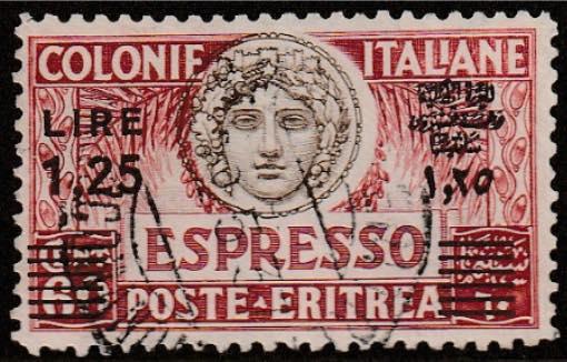 Colonie Italiane - Eritrea. 1935 - Espresso - L. 1,25 su 60 c. carmino n. 8. Cert. Biondi. Cat. € 2000,00. SPL (Image)