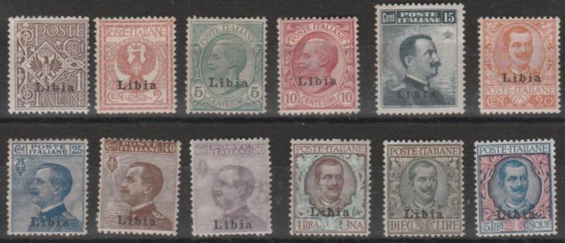 Colonie Italiane - Libia. 1912-15 - F.lli d’Italia soprastampati la serie ottimamente centrata n. 1/12. Cert. Biondi. Cat. € 7500,00. SPL. (Image)