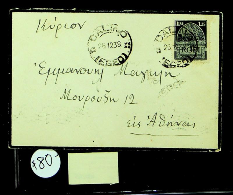 Italy Occ Greece 1938 rodi l1.25 on Mourning cover from Calino w/letter (Image)