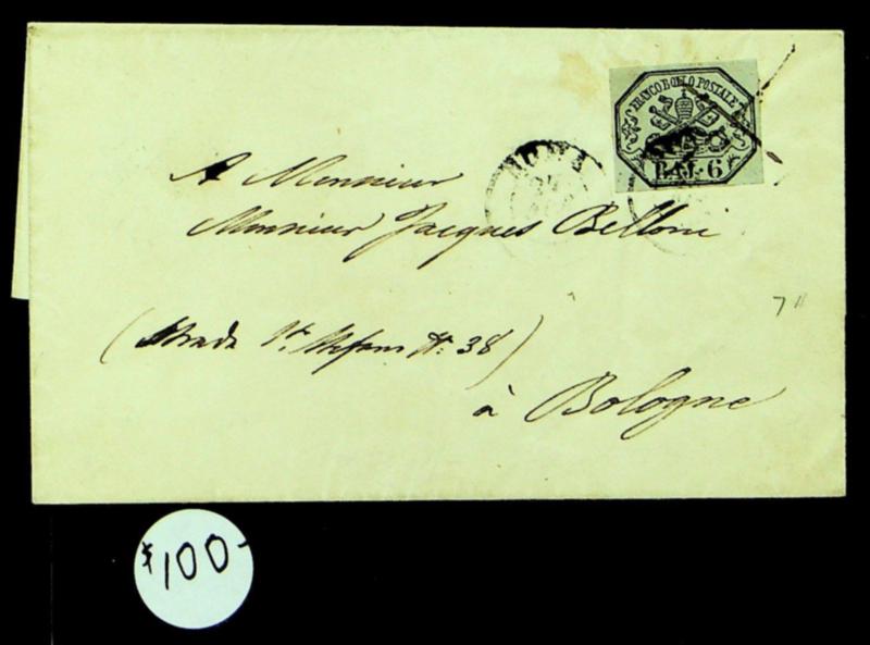 Italy early issue baj 6 on entire letter from Roma to Bologne (Image)