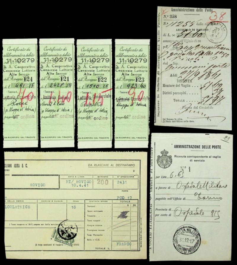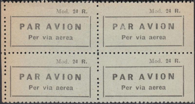 Italian Airmail Etiquettes 1930 (?) two line rare black on grey blue block of 4 (Image)