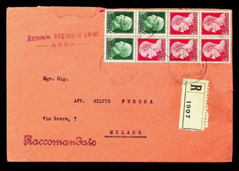 Italy 25cx3+ 20cx5 on Regd cover from Alba to Milano (Image)
