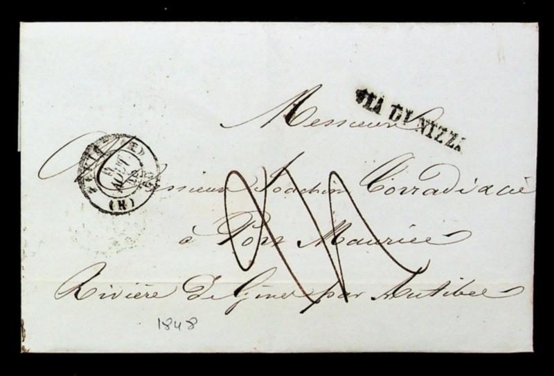 Italy 1848 prestamp cover w/ charge markings & "Via Di Nizza" cachet to Porto Maurizio (Image)