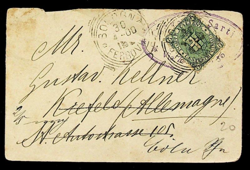 Italy 1900 5c on cover from Bologna to Krefeld redirected to Coln Germany (Image)