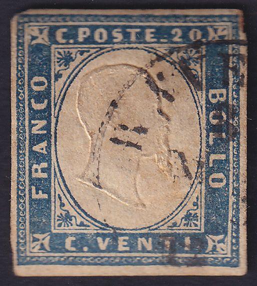 Italy 1862 20c blue rare used stamp # 2a value $ 750 (Image)