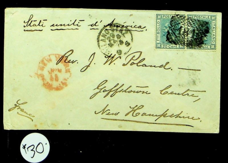 Italy 20c pair on cover to New Hampshire USA w/ cachet (Image)