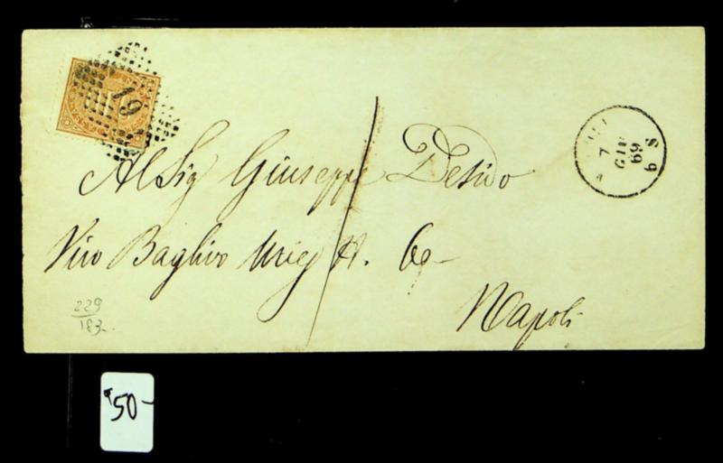 Italy 1869 early issue tassa 10c on entire letter to Napoli w/ cachet (Image)