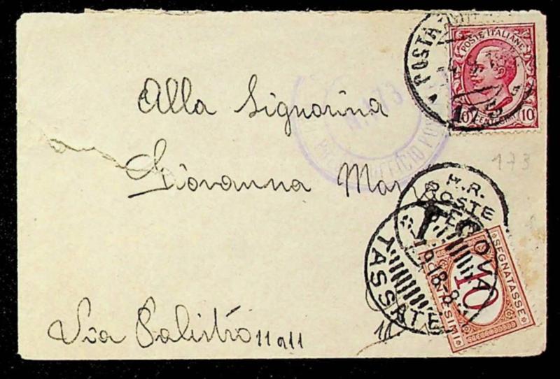 Italy 1918 Victor Emmanuel III 10c on Military censored cover w/ Postage Due 10c (Image)