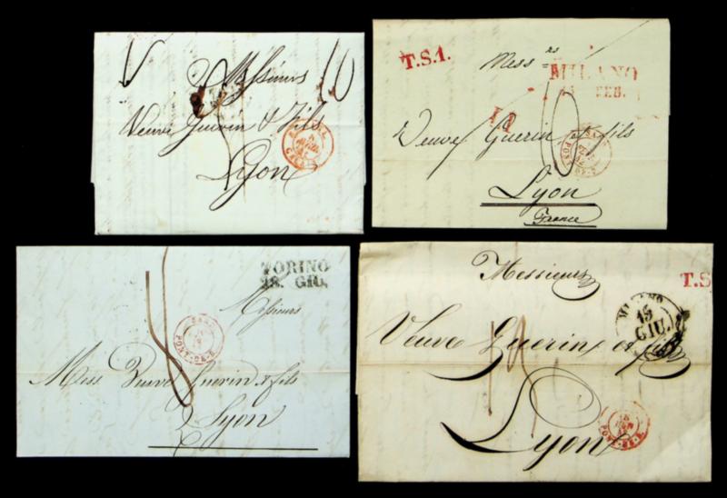 Italy 4 prestamp covers with charge markings from Torino/ Milano to Lyon France (Image)