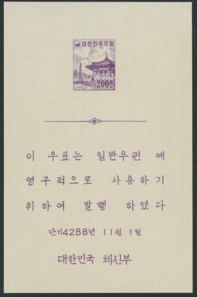 South Korea 1955 Presentation Sheet unused (Image1)