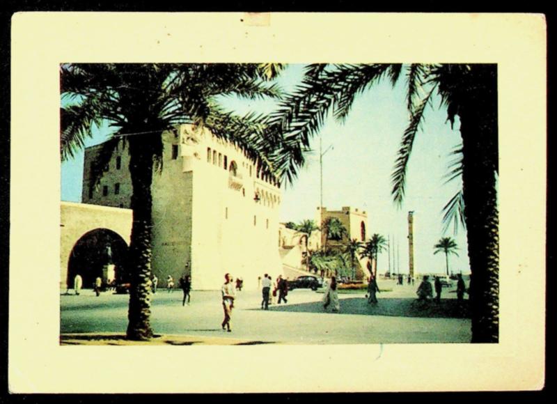 Libya 1955 3v on Tripoli, Piazza Castello PPC w/ "AV2" cachet in black to Brussels Belgium (Image)