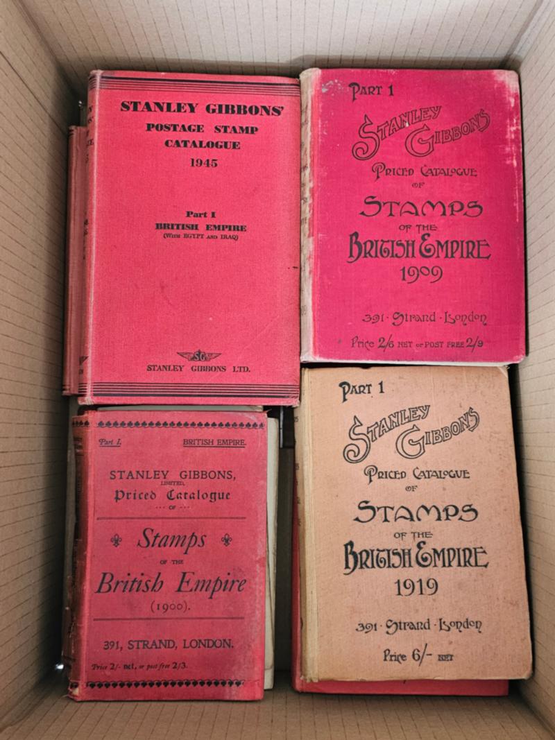 1890s-1940s Classic Stanley Gibbons catalogs for philatelic history seeker. A scarce assembly of classic catalogs. (Image)