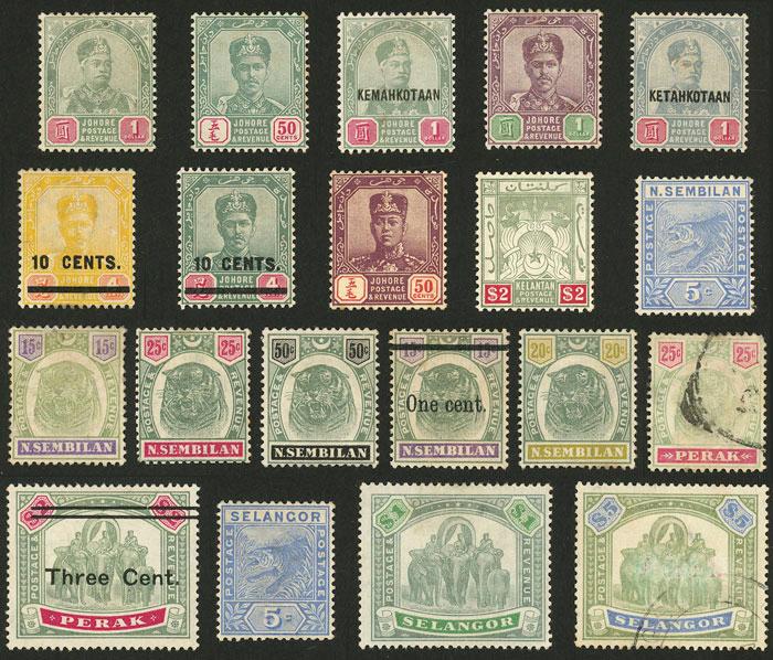 MALAYAN STATES: Lot of good values, almost all mint with light hinge marks (a few are used), very fine general quality, high catalog value, VERY LOW START! (Image)