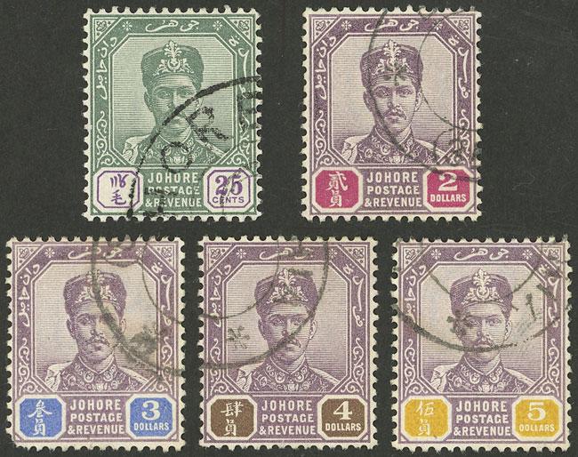 Sc.45 + 48/51, 1896 Sultan Ibrahim, high values of the set, used, excellent quality! (Image)