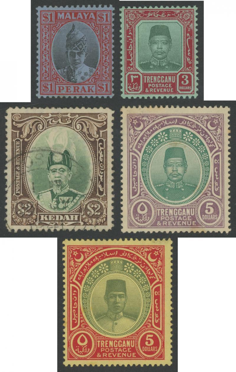 Collection on leaves from Straits Settlements & all States with many better singles & most of the 1949-55 sets mint, condition generally fine to very fine but some of the more highly catalogued unused stamps have been regummed including the Trengganu 1910-19 $3 & $5, Cat £8500+.