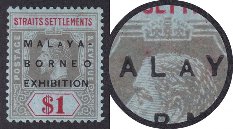 STRAITS SETTLEMENTS: 1922 Malaya-Borneo Exhibition $1 with Small Second 'A' in 'MALAYA' SG 247d, Cat £1300. (Image1)