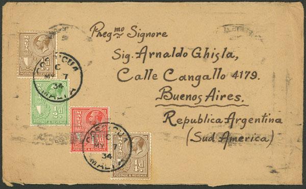 RARE DESTINATION: Cover franked with 2½p. sent from Cospicua to Argentina on 7/MAY/1934, with Buenos Aires arrival backstamp of 2/JUN, very attractive! (Image)