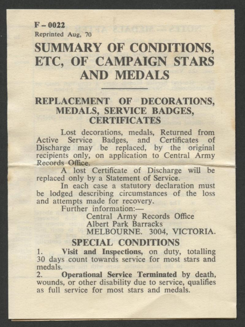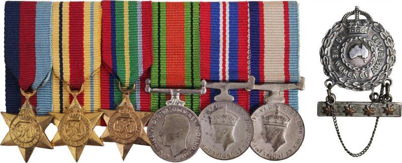 AUSTRALIA: Group comprising Australia Service Medal impressed 'T245234 O.L. COOLEY', Australian Defence Medal in box with miniature; WWII miniatures group of six with '1939-45' 'Pacific' & 'Africa' stars, 'War', 'Defence' and 'Australia Service' medals, Female Relative badge with four stars on suspender 'A242850' by Amor Sydney; also 'History of 53/87th Field Battery R.A. North Africa Italy 1943-45'; also GB RAF Long service & Good Conduct Medal engraved 'A32231 BREW K.F.', dog tags, soldiers pay book, & ribbons, condition variable.