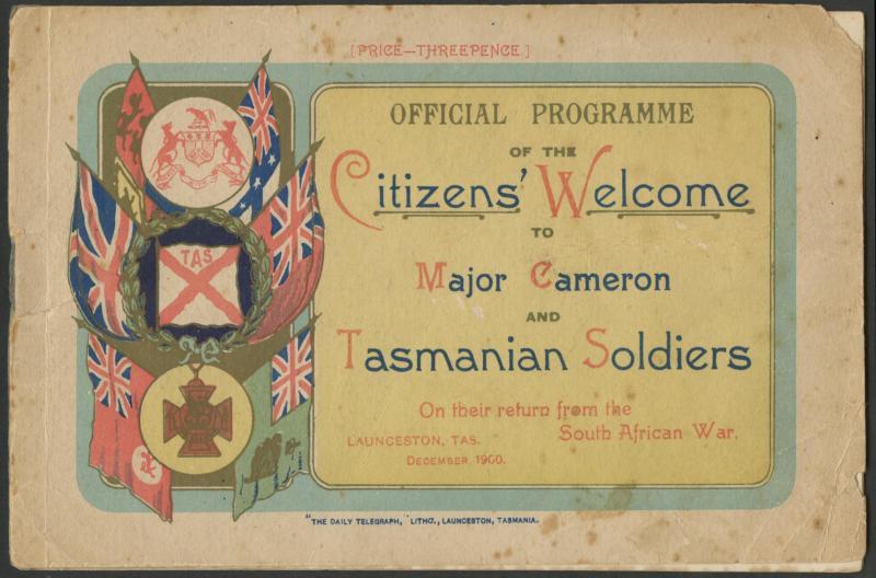 Tasmania 'Tasmanians In The Transvaal War' (1905) by John Bufton h/b 534pp wear to cover otherwise Very Fine; plus Daily Telegraph pamphlet (1900) 'Citizens Welcome to Major Cameron and Tasmanian Soldiers' s/b 10pp. Both scarce.