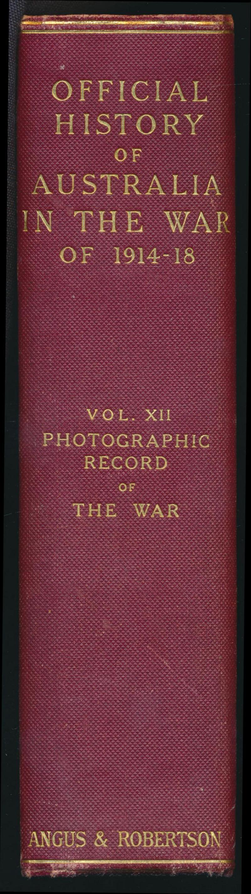 WWI 'Official History of Australia in the War of 1914-18' Volume XII 'Photographic Record of The War' annotated by CEW Bean and HS Gullett, h/b with 753 illustrations, the most in demand volume and commonly missing from sets, Fine condition. (Image1)