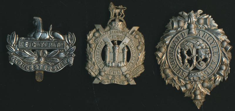 Badges Range (45) including Argle and Sutherland, The Royal Scots, Royal Scots Greys, Intelligence Corps, On War service 1915, Scottish Kings Own Borderers, Egypt/Gloucestershire; plus range of pips (25), mainly Fair/Fine.